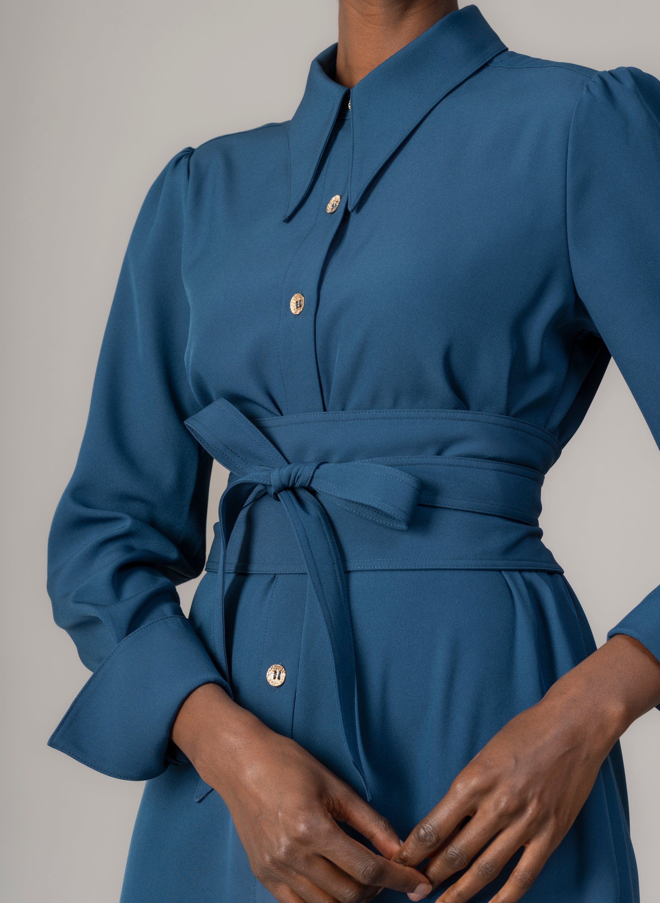 Allegra Hourglass Fit Everyday Midi Shirt Dress With Obi Belt In Prussian Blue Crepe