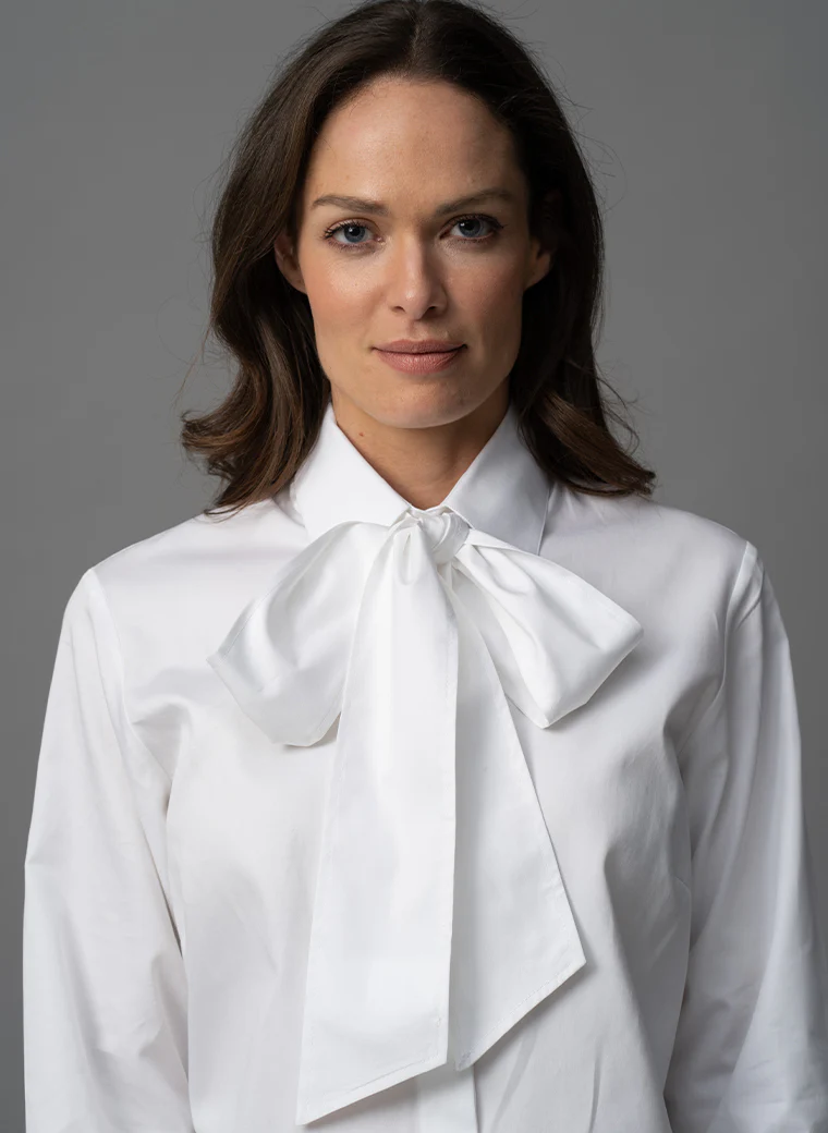 Shown here with the Colleen shirt in white cotton poplin.Â