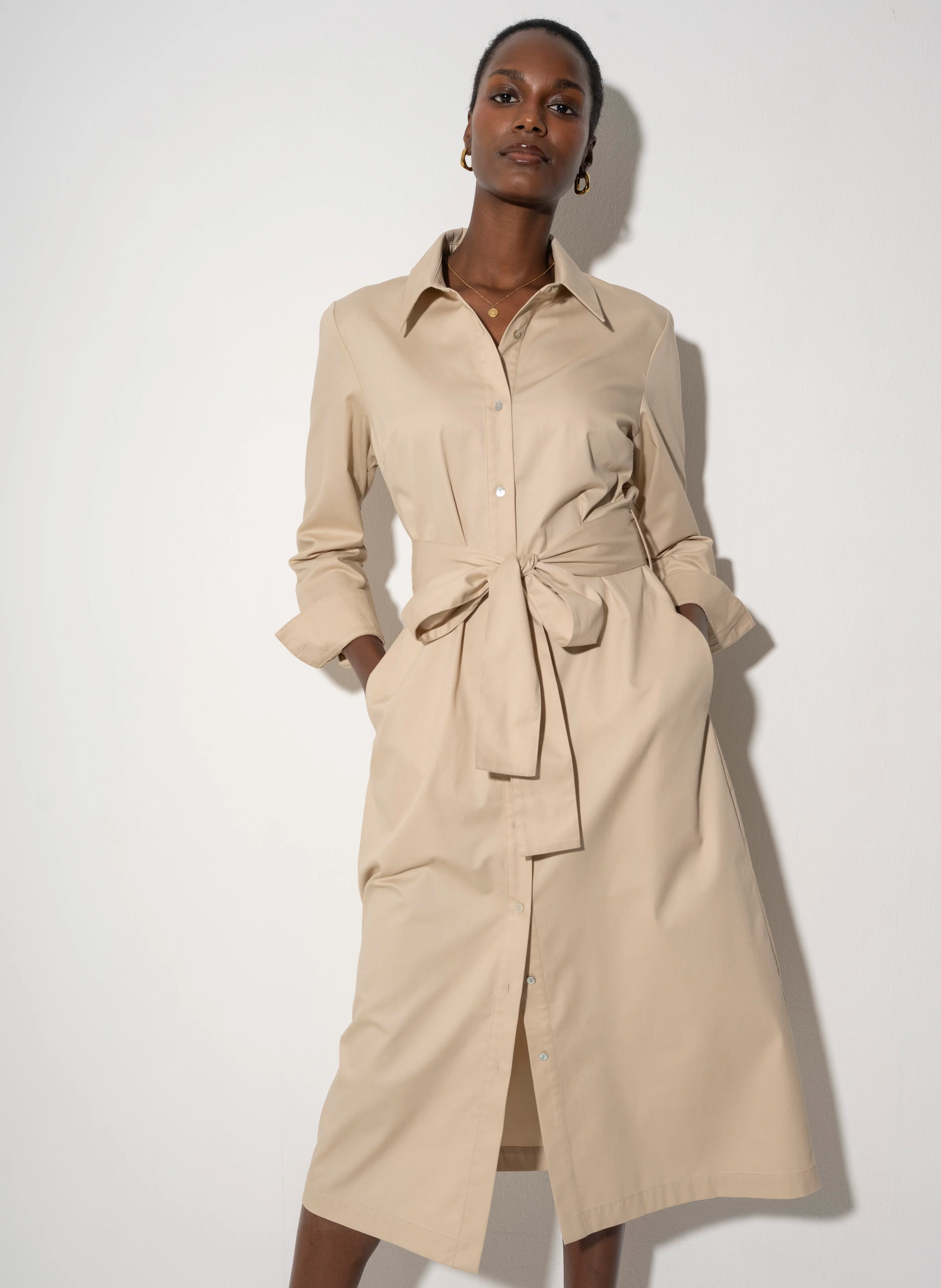 Ronnie Regular Fit Classic Midi Shirt Dress In Sand Cotton Chino